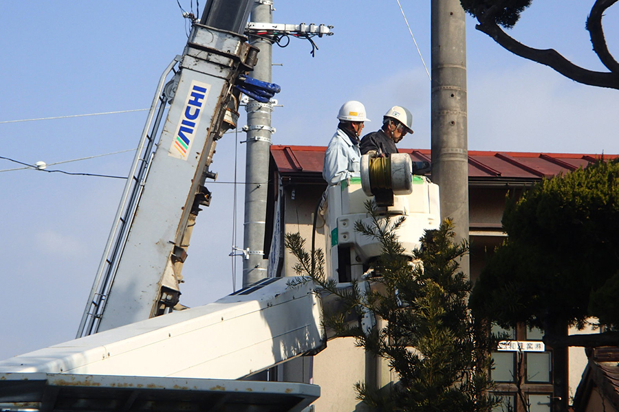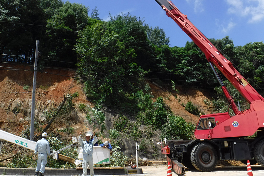 主な業務内容は、倉敷市内の建柱工事を行っており、皆様の生活に欠かせないライフラインに関する業務に携わっております。